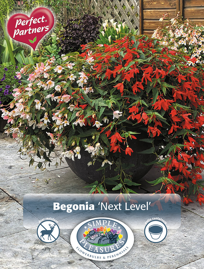 Боливийската бегония (Begonia boliviensis) осигурява безкраен цвят и цъфти през цялото лято. Увехналите цветя падат сами, не е необходимо да ги премахвате. Група сортове с много равномерен растеж. Големите цветя и венчелистчета са ярко оцветени. Различните цветове цъфтят рано и едновременно. Формата е компактна, кръгла и леко висяща. Може да бъде изцяло изложено на слънце или да расте на полусянка. Идеален за окачване на кашпи и саксии.