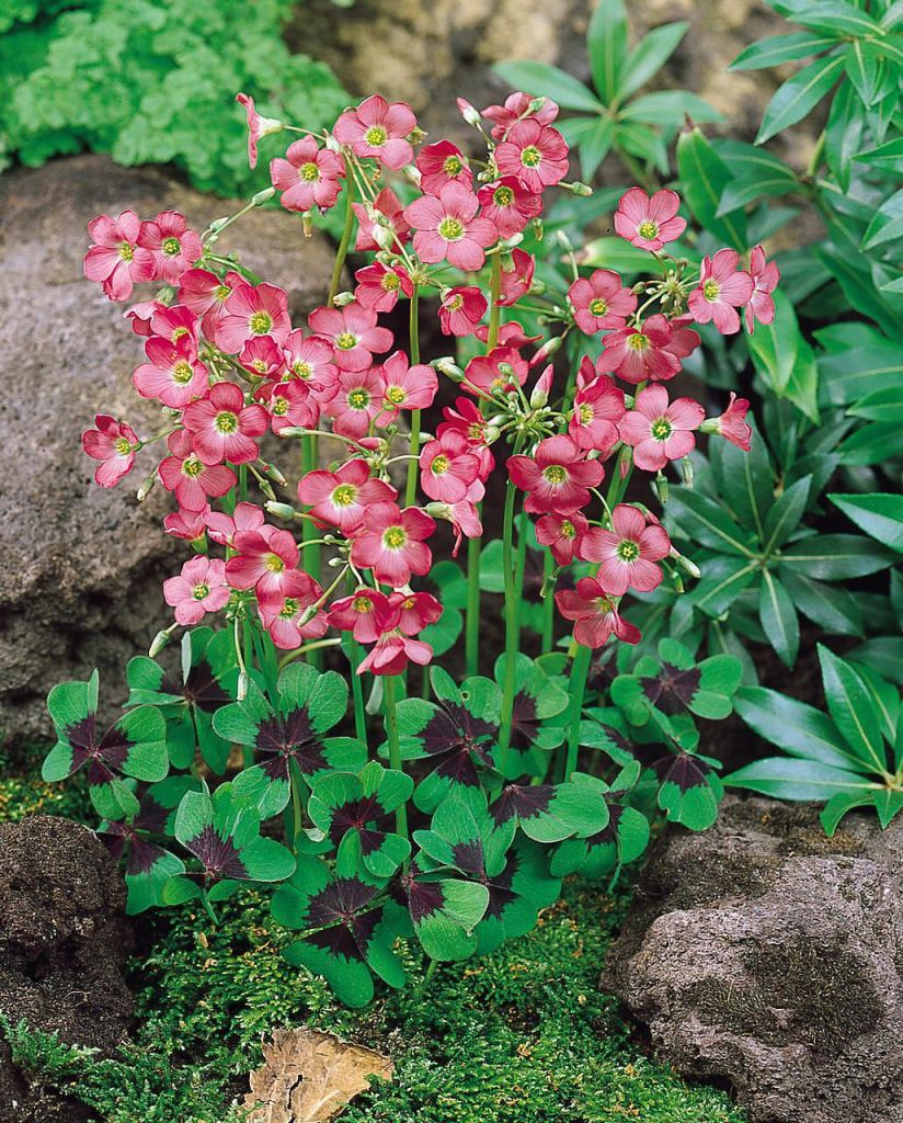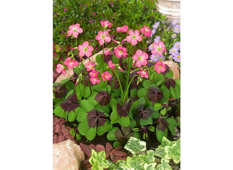 Късметлийска четирилистна детелина.Цъфти от юни до началото на зимата. Цветовете са обагрени в нежно розово. Някои от видовете оксалис се затварят вечер и при облачно време и се отварят през деня, особено когато е слънчево.