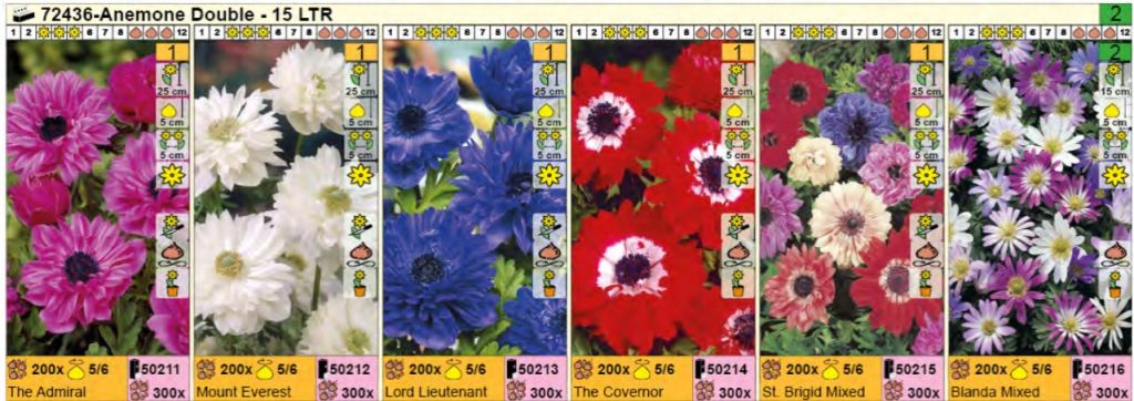 6  по 200 броя от вид гъсто анемоне,подредени в много удобна за търговска цел опаковка /шоубокс/.