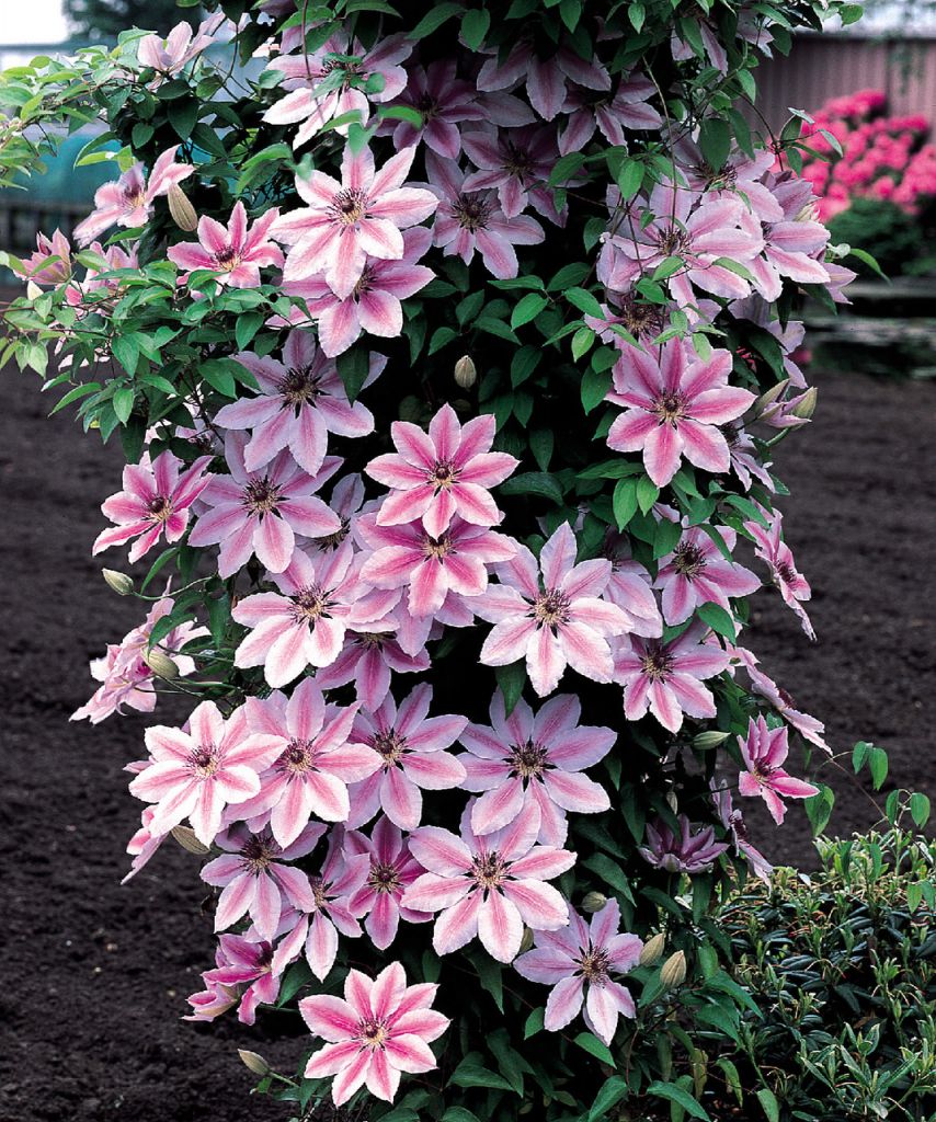 | Клематисите придават височина, обем, цвят и романтика на всеки двор.Прекрасно украсяват огради, беседки, арки, декоративни решетки закрепени за стените на къщи и гаражи. Размер Р9. |