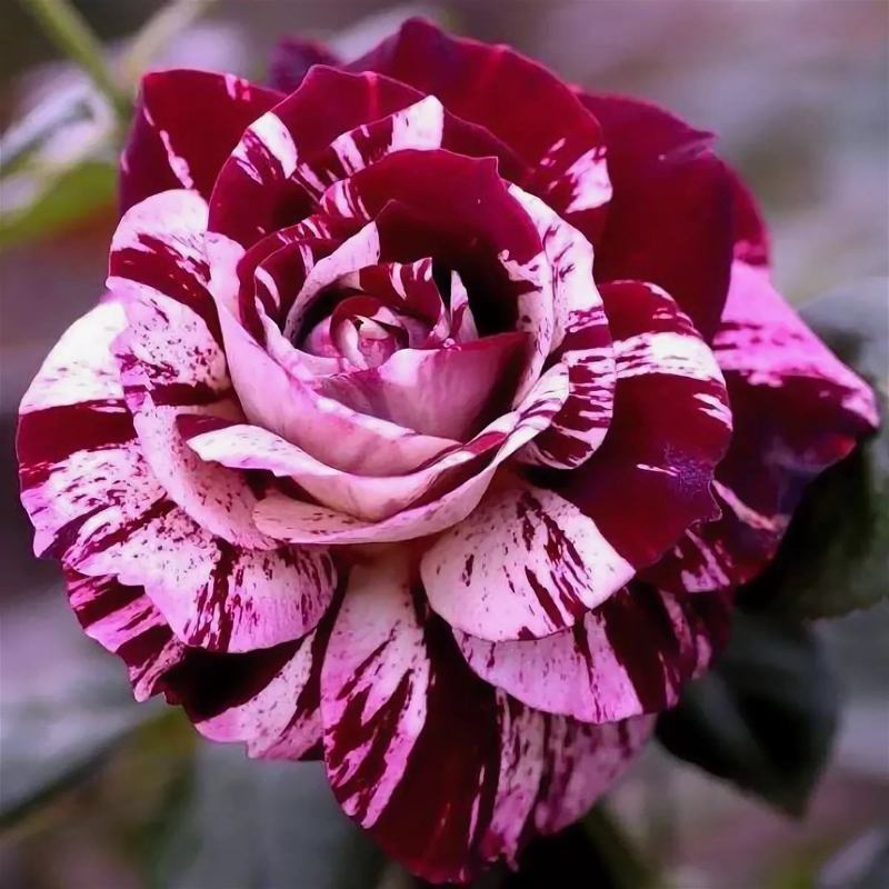 | Много ароматна роза с кичест цвят.Интересен ивичест цвят в червено-лилавата гама ( на бургундско вино) и светли кремави ивици.Цветът е кичест , цъфти на малки съцветия през целия сезон.Листата са лъскави и тъмно зелени.Достига височина от 70 до 90 см.Силно устойчива на заболявания. |