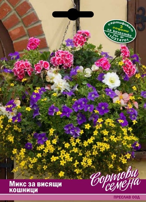 Смес от цветни, обилно и дълго цъфтящи ВИСЯЩИ растения. Семената се засяват през април, директно в балконски кутии или контейнери, пълни с плодородна и пропусклива градинска почва. Покриват се с тънък слой от 0,5 cm почва и ги съхранявайте при достатъчна влажност и температура около 20°C. Твърде гъсто поникване трябва да се разреди. Цъфтят от средата на юни до застудяване. През лятото растенията трябва да се поливат редовно и да се торят със слаби разтвори на многокомпонентни градински торове.