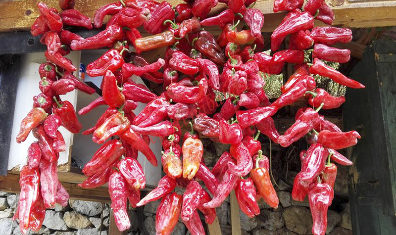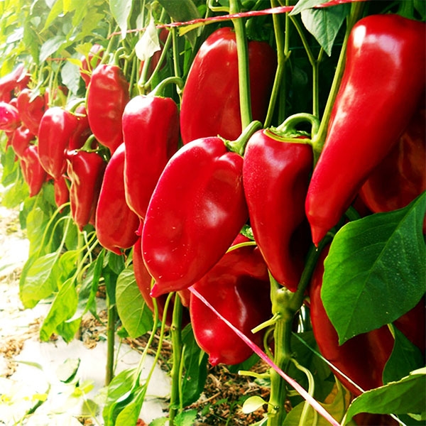 | Подходящ за сушене.Плодове-висящи,едри,с формата на двустенна капия,дълги 14-15см,средна маса на 1 плод-90-100гр.В техническа зрялост плодовете са тъмно зелени,а в ботаническа тъмно червени. |