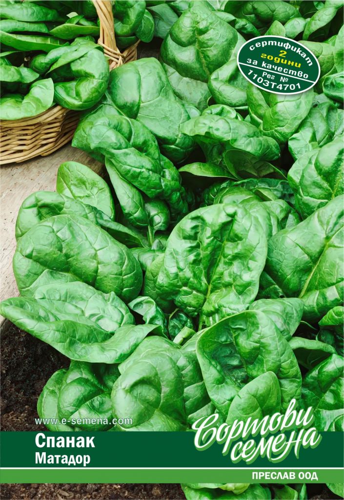 Сортът спанак Матадор е ранен и високодобивен. Подходящ е за пролетно и есенно отглеждане. Вегетационният му период е около 45 дена. Студоустойчив е. Когато избирате място за засяването му, имайте предвид, че обича слънчеви места и леки и влажни почви. Може да се отглежда в оранжерии и на открито.Формира едра розетка с диаметър до 25 см. Листата са дълги, тъмнозелени, блестящи, месести и много крехки и сочни.Вкусовите качества на сорта Матадор са доказани. Може да го консумирате свеж или да приготвяте различни ястия и сосове с него.